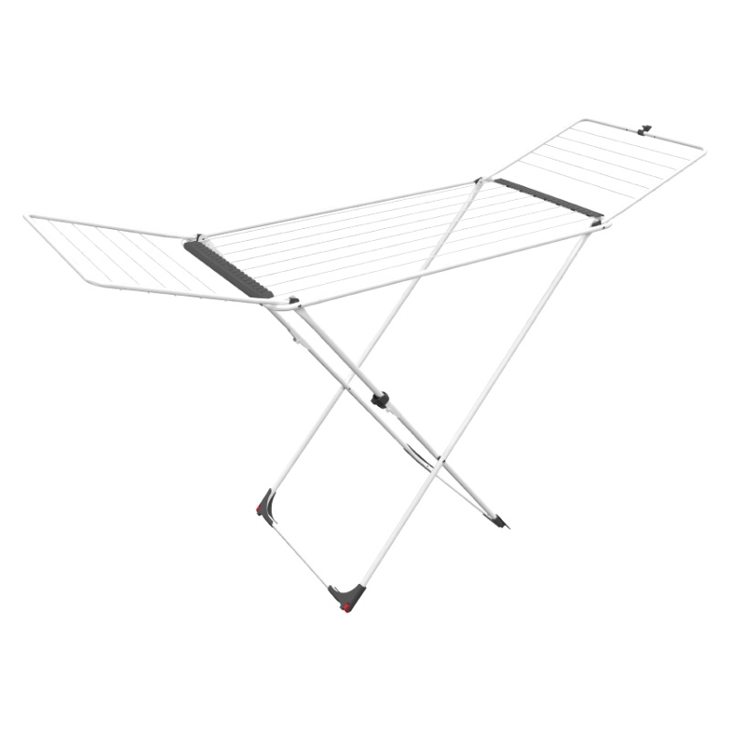 Składane nogi w kształcie litery X sprawiają, że rozkładanie suszarki jest niezwykle proste. Dwie dedykowane blokady i solidny stalowy stelaż, który zapewnia trwałość i stabilność.